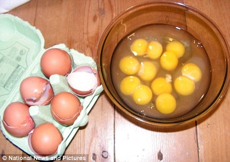 Wanita yang beruntung menemukan 6 telur yg punya kuning ganda